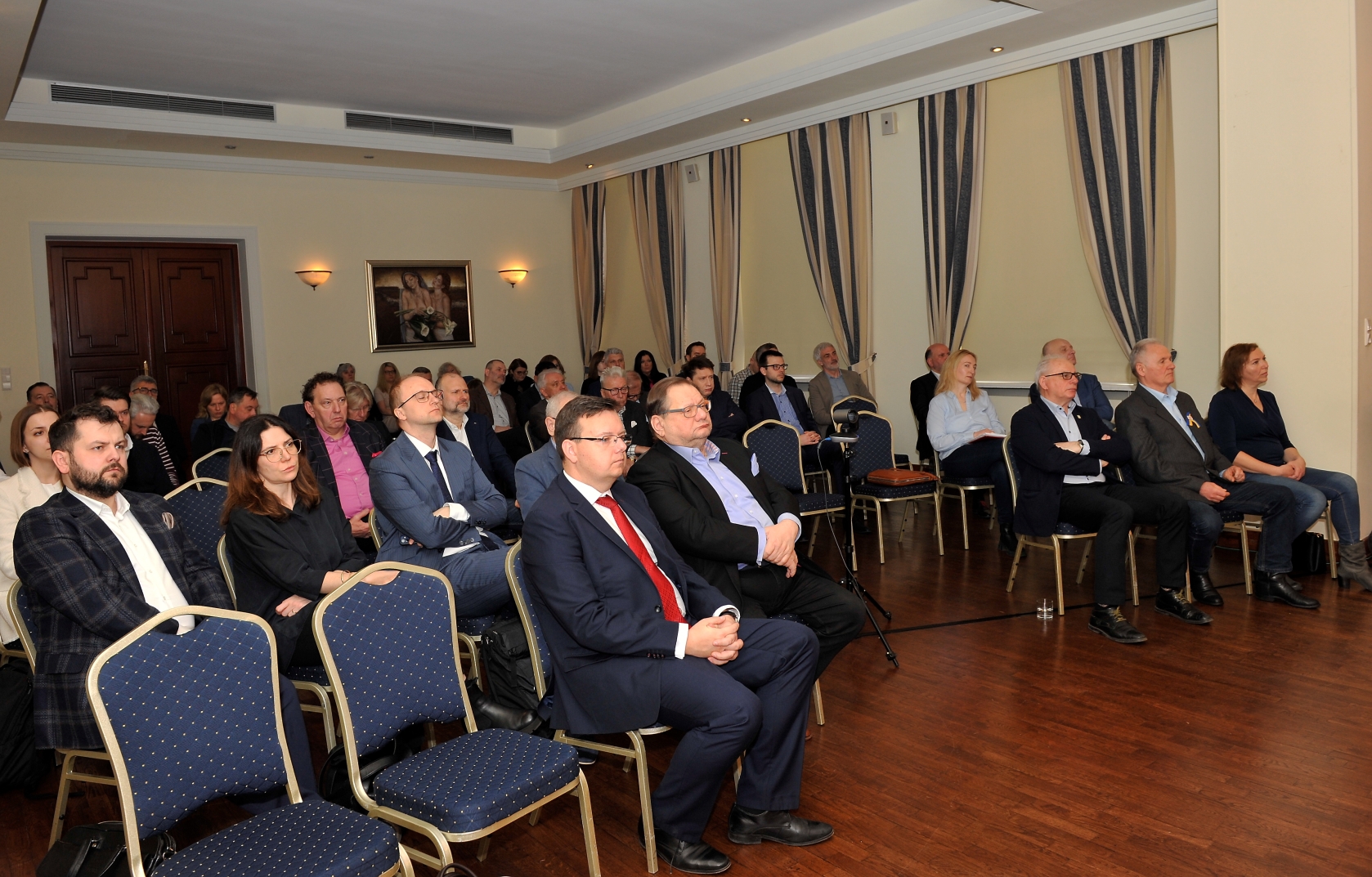 Po przedstawieniu dostojnych gości Prezes Business Centre Club Marek Goliszewski wręczył Jego Eminencji Ambasadorowi Andrijowi Deszczycy specjalną Złotą Statuetkę BCC dla prezydenta Ukrainy Wołodymyra Zełenskiego. – W imieniu środowisk skupionych w BCC, członków – przedsiębiorców ale także organizacji pozarządowych, obywatelskich poprosić pana Ambasadora, żeby z naszych rąk przyjął ten oto symbol zwycięstwa dla pana prezydenta Wołodymyra Zełenskiego. Ta statuetka odzwierciedla zwycięskiego olimpijczyka i myślę, że odzwierciedla ona nasze życzenia dla Ukrainy, dla pana Prezydenta, pana Ambasadora i wszystkich kolegów, którzy decydują o tym jak walczyć na tej wojnie. Ale jest też odzwierciedleniem naszych wzajemnych obrotów gospodarczych, które sięgnęły w ubiegłym roku 48 mld złotych. Mamy nadzieję, że będziemy się dalej skupiać na tym, żeby tę współpracę rozwijać, to spotkanie jest tego przykładem – powiedział Prezes Marek Goliszewski.