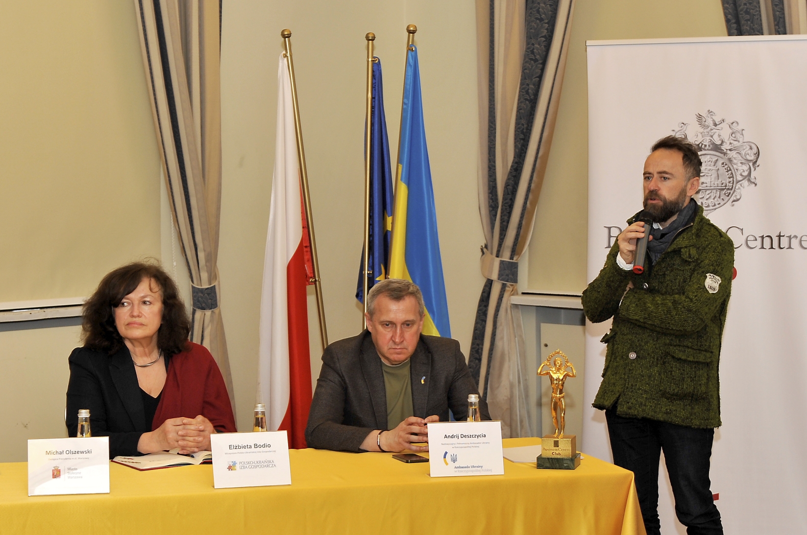 Przyjmując statuetkę Ambasador Ukrainy Andrij Deszczycia powiedział: – Dla nas pierwszorzędną rzeczą jest broń bo jak nie będziemy mieli broni to nie wygramy. A wierzymy ze wygramy. I dlatego odebrałem tę statuetkę w imieniu prezydenta Zełenskiego bo wszyscy wierzymy, że naród ukraiński wygra z nawałą rosyjską. Chciałem podziękować wam za wsparcie którego udzielacie naszym obywatelom, za tą serdeczność, z którą zostali przyjęci Ukraińcy w Polsce. Podkreślam, że oni nie są uchodźcami. Są wymuszonymi migrantami. Uciekają od wojny, nie ze swojej woli. Większość z nich zostaje w Polsce chociaż mogą jechać dalej na zachód. Po pierwsze tutaj zostali przyjęci serdecznie, ciepło, cała infrastruktura jest dla nich pomocna. Po drugie jest bliskość pomiędzy naszymi narodami. A po trzecie wierzą, że wkrótce wrócą na Ukrainę bo chcą tam budować swoją przyszłość.