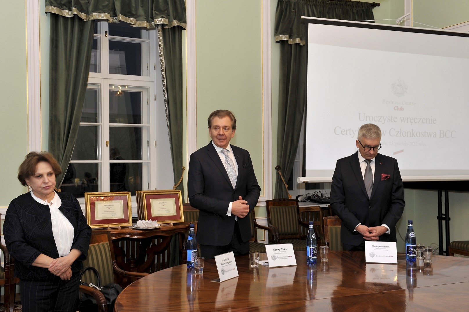 Po raz kolejny odbyło się uroczyste powitanie i wręczenie certyfikatów nowym członkom Loży Warszawskiej Business Centre Club. Nowi członkowie Klubu zostali powitani w Sali Okrągłego Stołu Pałacu Staszica w Warszawie przez Kanclerza Loży Warszawskiej – Cezarego Gizkę, Grażynę Majcher-Magdziak – członka Rady Organizatorów oraz Loży Założycieli BCC oraz Macieja Owczarka – Dyrektora Generalnego Business Centre Club.