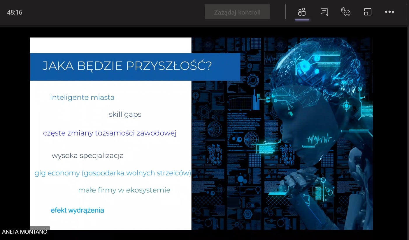 Wykład poprowadziła Aneta Montano, MBA – coach i mentor liderów, przedsiębiorca, związana z biznesem i na stanowiskach zarządczych od ponad 20 lat. Interesuje ją związek pomiędzy autentycznością lidera a sukcesem przedsiębiorstwa oraz coaching transformujący, właścicielka firmy Gooday.