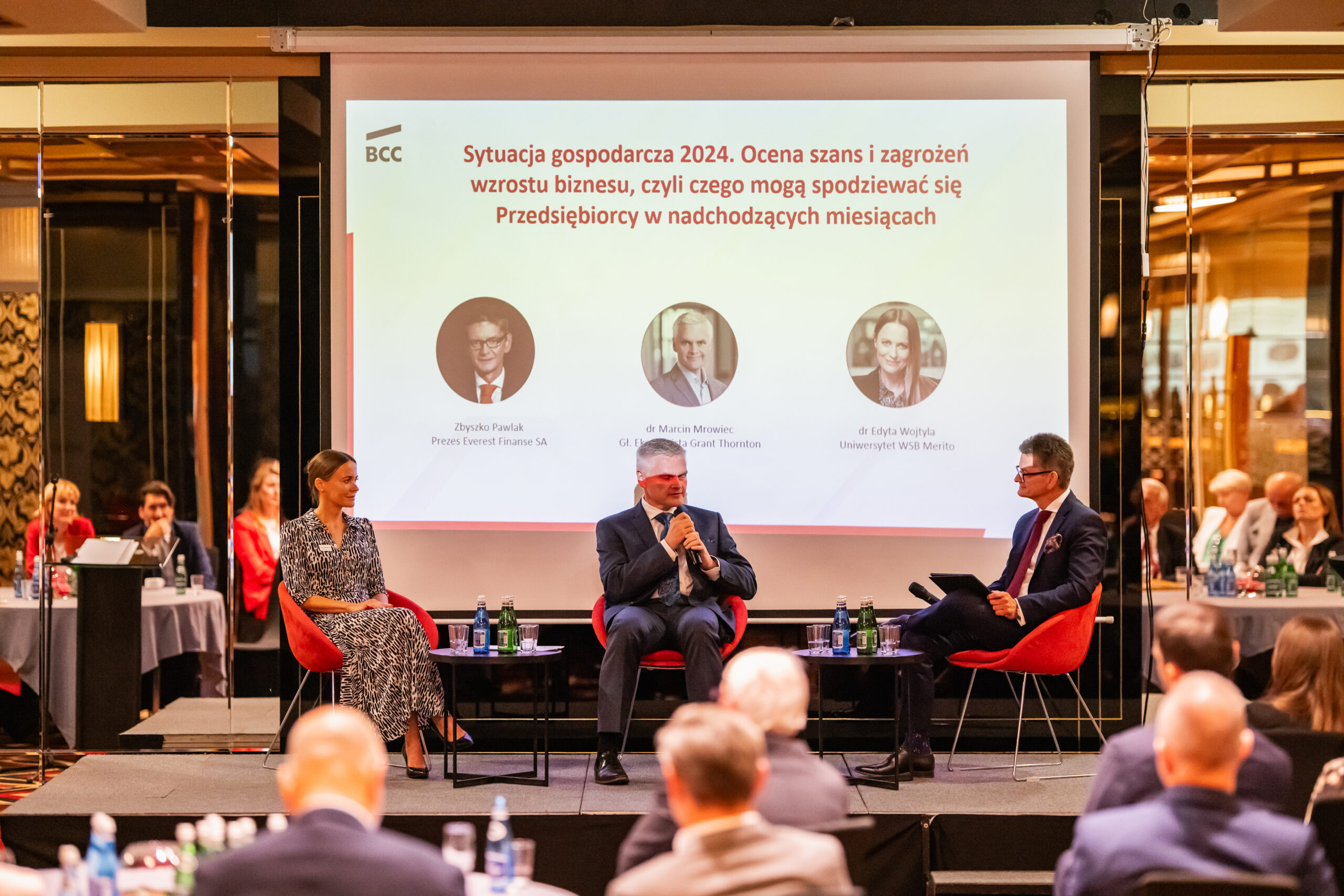Wybitni eksperci, ekonomiści dr Edyta Wotyla z Uniwersytetu WSB Merito oraz dr Marcin Mrowiec z Grant Thornton, podczas panelu prowadzonego przez prezesa Everest Finanse Zbyszko Pawlaka, opowiedzieli o sytuacji gospodarczej w 2024 r., o wyzwaniach oraz szansach, przed którymi stoją przedsiębiorcy.