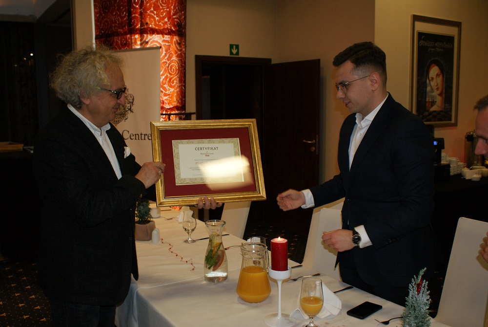 Andrzej Mochoń wręczył certyfikaty członkowskie nowym członkom Loży oraz karty VIP Targów Kielce, zapraszając do udziału w imprezach wystawienniczych planowanych przez Spółkę w 2022 r.