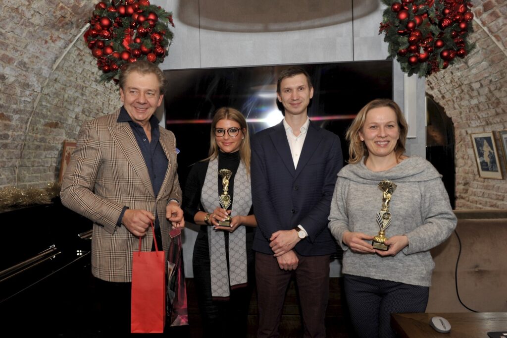 Drugie miejsce zajęła para: Małgorzata Kasperska (Schneider Electric) i Jarosław Dobrowolski (Bravecare) a na trzecim uplasowali się: Tatiana Hrechorowicz (Macaroni Tomato) oraz Jerzy Gil (Av. Net). Zwycięzcom gratulował oraz wręczył nagrody Kanclerz Loży Warszawskiej BCC Cezary Gizka życząc równocześnie spokojnych, zbliżających się Świat a także zapowiadając kolejne spotkania brydżowe organizowane przez Lożę Warszawską BCC tuż po Nowym Roku.