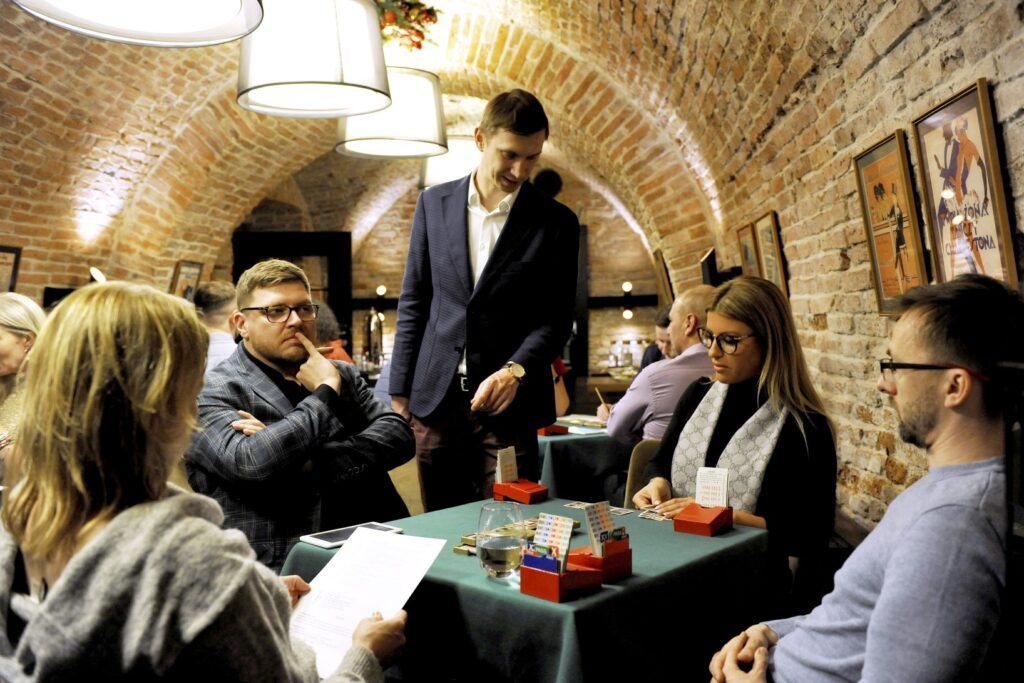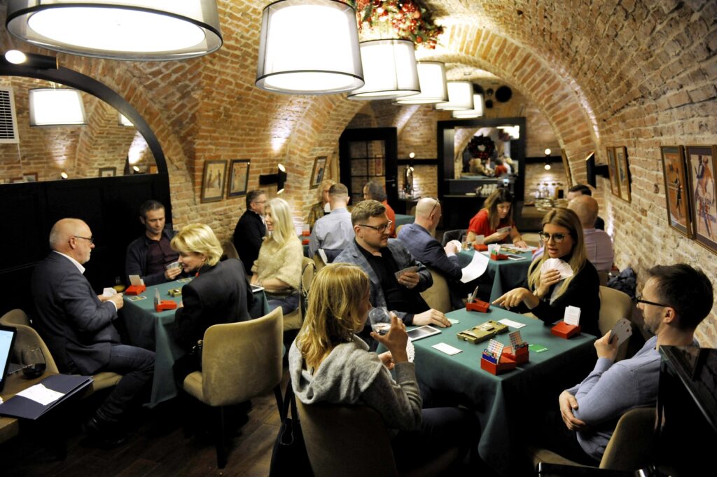 Emocje gęsto kłębiły się pod sufitami Hotelu Teatro, w którym toczyliśmy rozgrywkę. Do ostatniego rozdania ważyły się losy zwycięskiej drużyny. Każdy z uczestników miał chrapkę na zwycięstwo wieńczące cotygodniowe zmagania na kursie, podczas którego od podstaw nauczyliśmy się zasad, licytacji, zapisu brydżowego oraz pierwszego systemu licytacyjnego. Po bardzo zajadłych i wyrównanych, karcianych bojach, Igor Łosiewicz – ze szkoły WawaBrydż, organizatora turnieju a także całego kursu dla menedżerów, ogłosił zwycięskie drużyny. Z niemałą radością oznajmiamy, że najlepszą drużyną turnieju okazały się panie: Eliza Dąbrowska – Loża Warszawska BCC i Ewa Rzodkiewicz – Loża Warszawska BCC.