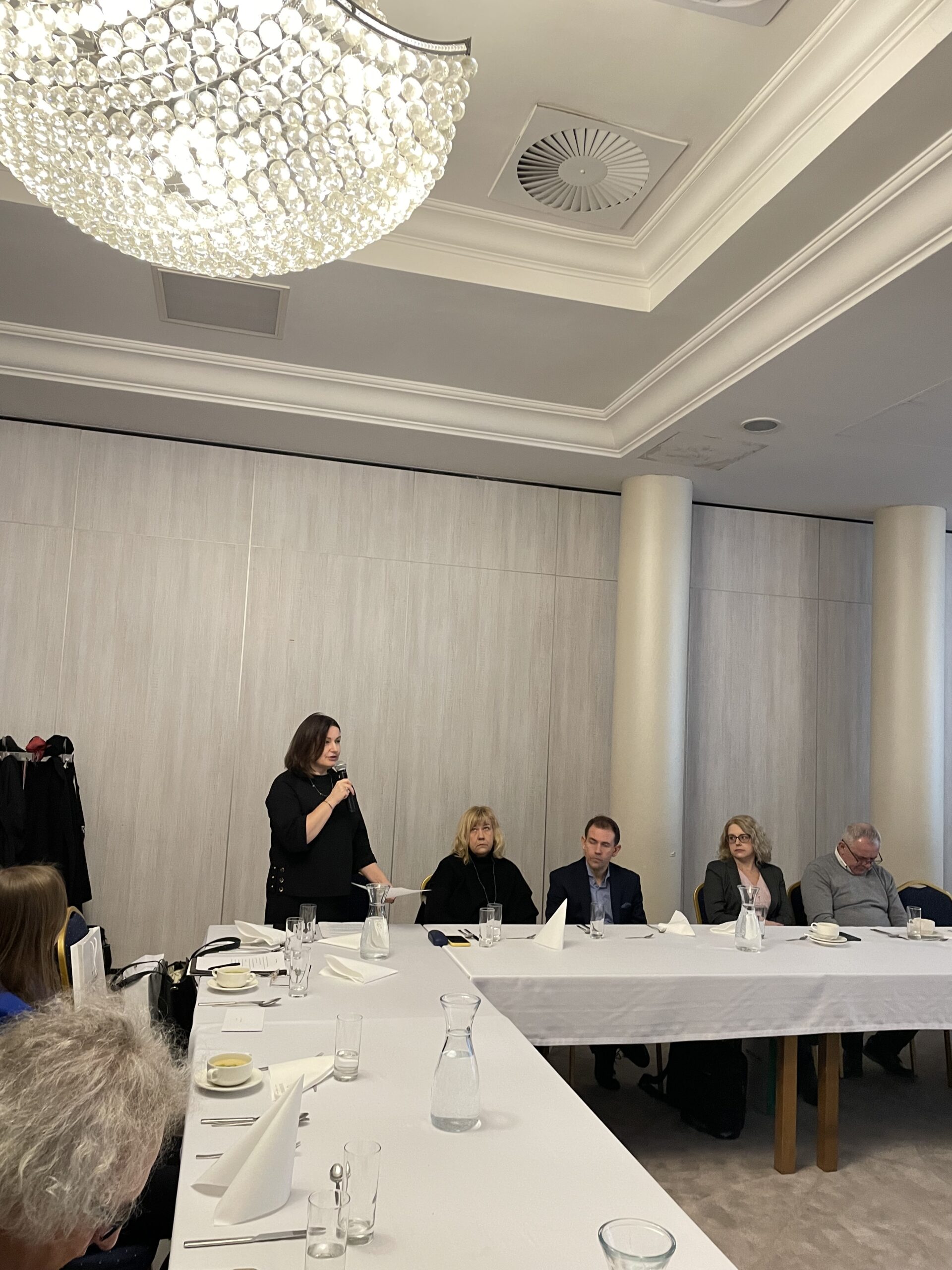 Po zakończeniu dyskusji A. Mochoń, Kanclerz Loży oddał głos M. Gawęckiej, która przedstawiła informacje o Świętokrzyskiej Grupie Przemysłowej INDUSTRIA S.A. Firma wyrasta z prawie 150-letniej historii Kieleckich Marmurów oraz przemysłowych tradycji regionu. Obecnie w jej skład wchodzą takie jednostki jak Świętokrzyskie Kopalnie Surowców Mineralnych, Industria Nawozy, Industria Logistyka, Industria Zielona Energia i Industria Nuclear Solutions. Od września 2023 r. Grupa jest właścicielem znanej drużyny piłki ręcznej „Industria Kielce”. Firma jest też liderem Centralnej Doliny Wodorowej im. Braci Łaszczyńskich. A. Mochoń, Kanclerz Loży Świętokrzyskiej opowiedział uczestnikom spotkania o znanych mu faktach z życia rodziny Łaszczyńskich.