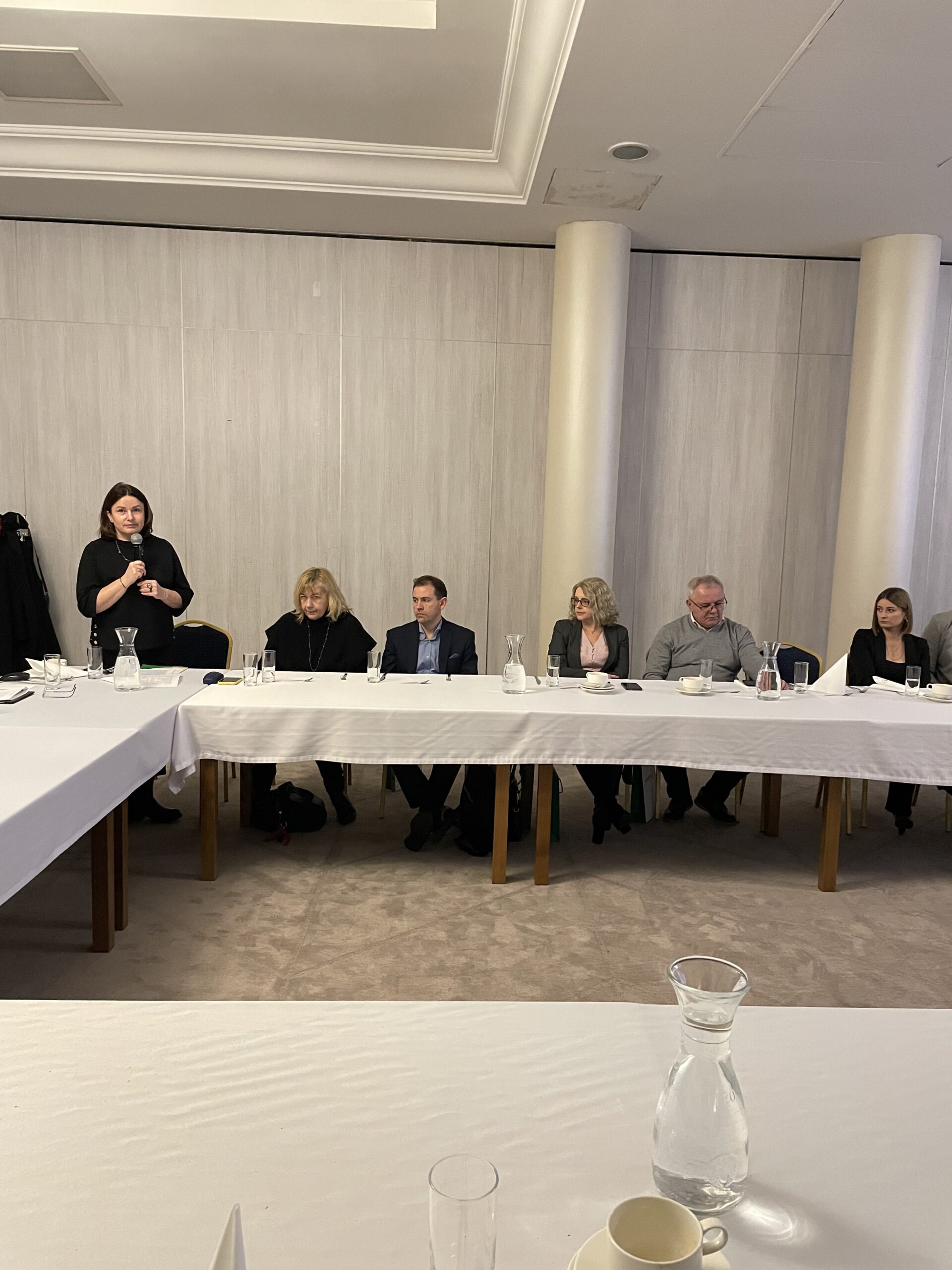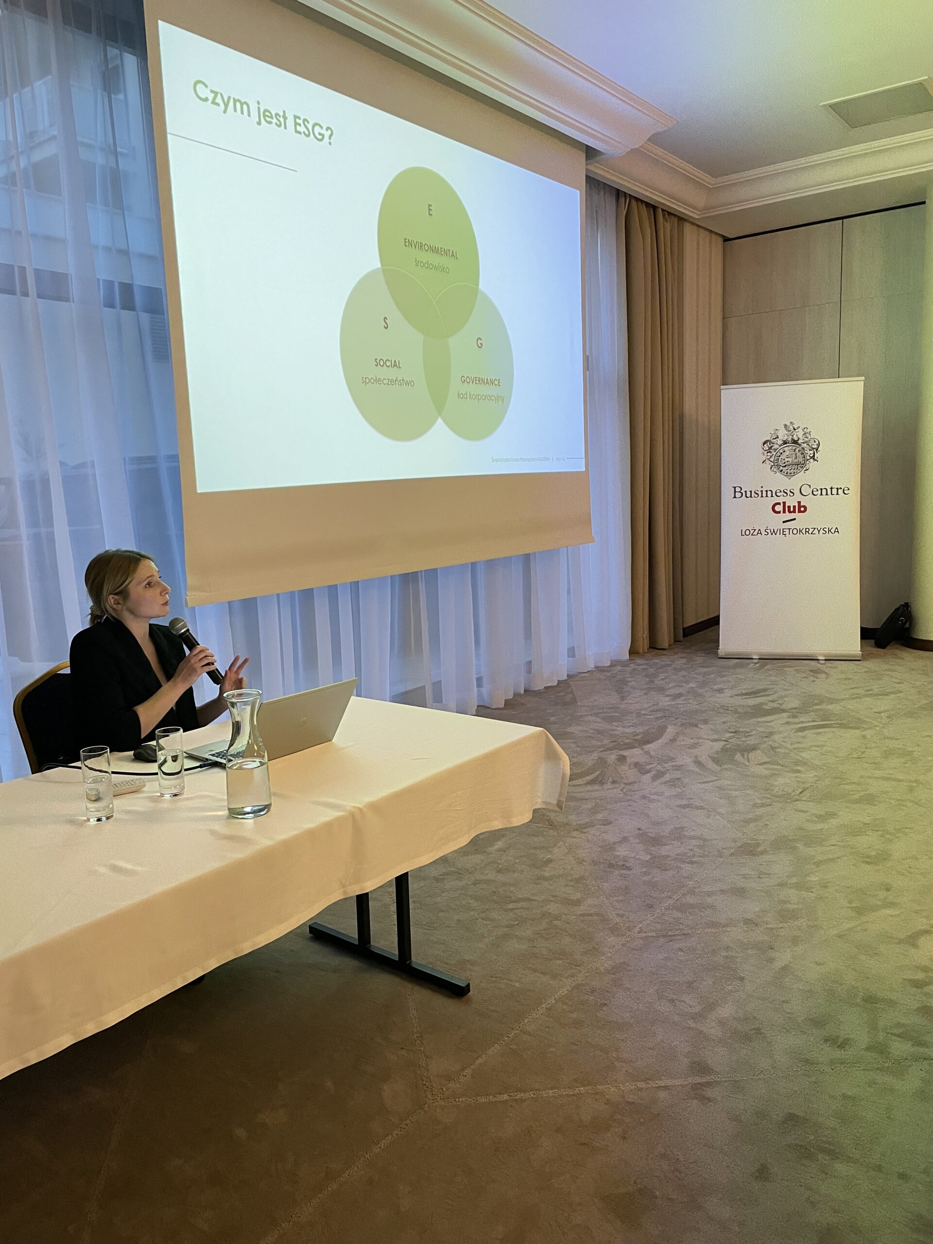 Po prezentacji Ś.G.K. Industria głos zabrała M. Rybak, która przedstawiła podstawowe założenia strategii ESG. Poinformowała m.in. o zakresie i celach, jakie przyświecają tej strategii oraz o harmonogramie wprowadzania obowiązku raportowania w tym zakresie, który obejmie już 2024 r., z tym, że będzie on wprowadzany stopniowo począwszy od największych firm. Ze względu na obszerność zagadnień oraz złożoność raportowania radziła, aby nawet firmy, które mają dość odległy termin wejścia w obowiązek raportowania, już rozpoczęły przygotowania w tym zakresie. Rozpoczęła się dyskusja, w której jako pierwszy głos zabrał J. Kowal z Grupy PSB informując o dwóch rozwiązaniach, jakie firmy mogą wybrać w zakresie ESG – albo zatrudnić firmę zewnętrzną, albo wyszkolić swoich pracowników. Uczestnicy dyskusji pytali m.in. o wady i zalety każdego z tych rozwiązań, o termin rozpoczęcia wymagania przez banki zagadnień ESG w procesie udzielania kredytu oraz o audytorów ESG.