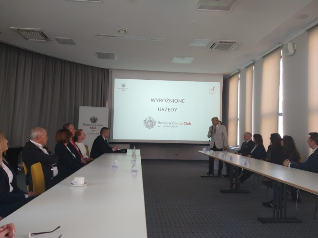 Podczas spotkania Wiceprezes Zarządu BCC, Kanclerz Loży Katowickiej Eugeniusz Budniok i Kanclerz Loży Bielskiej Janusz Szymura uroczyście wręczyli wyróżnienia naczelnikom nagrodzonych urzędów.